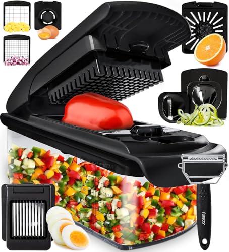 Vegetable Chopper Cutter Mandoline Slicer Cheese Grater - Food Onion Salad Veggie Chopper with Container - French Fry Potato Dicer Slicer Cutter - Kitchen Tools Gadgets (All-in-1 Black)