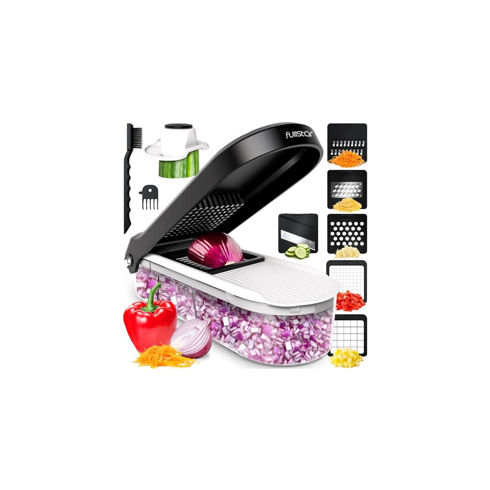 Fullstar Vegetable Chopper & Mandoline Slicer - Julienne Cutter Dicer Grater for Food Veg Onion Cucumber Tomato Salad Potato Cheese - Kitchen Gadgets & Accessories (Standard 7-in-1, White)