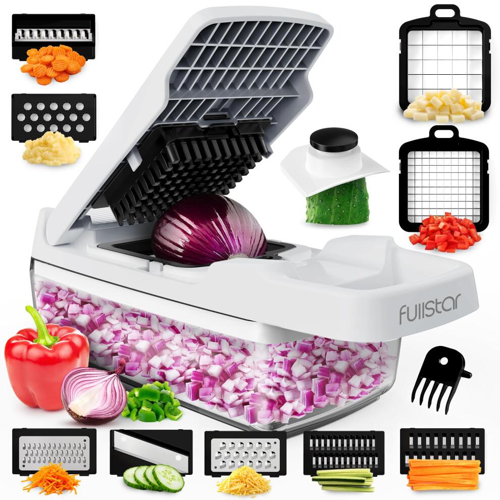 Fullstar Vegetable Chopper and Mandoline Slicer - Cheese Grater, Food Chopper with Container, Kitchen Accessories, Home Essentials (8 in 1, White)