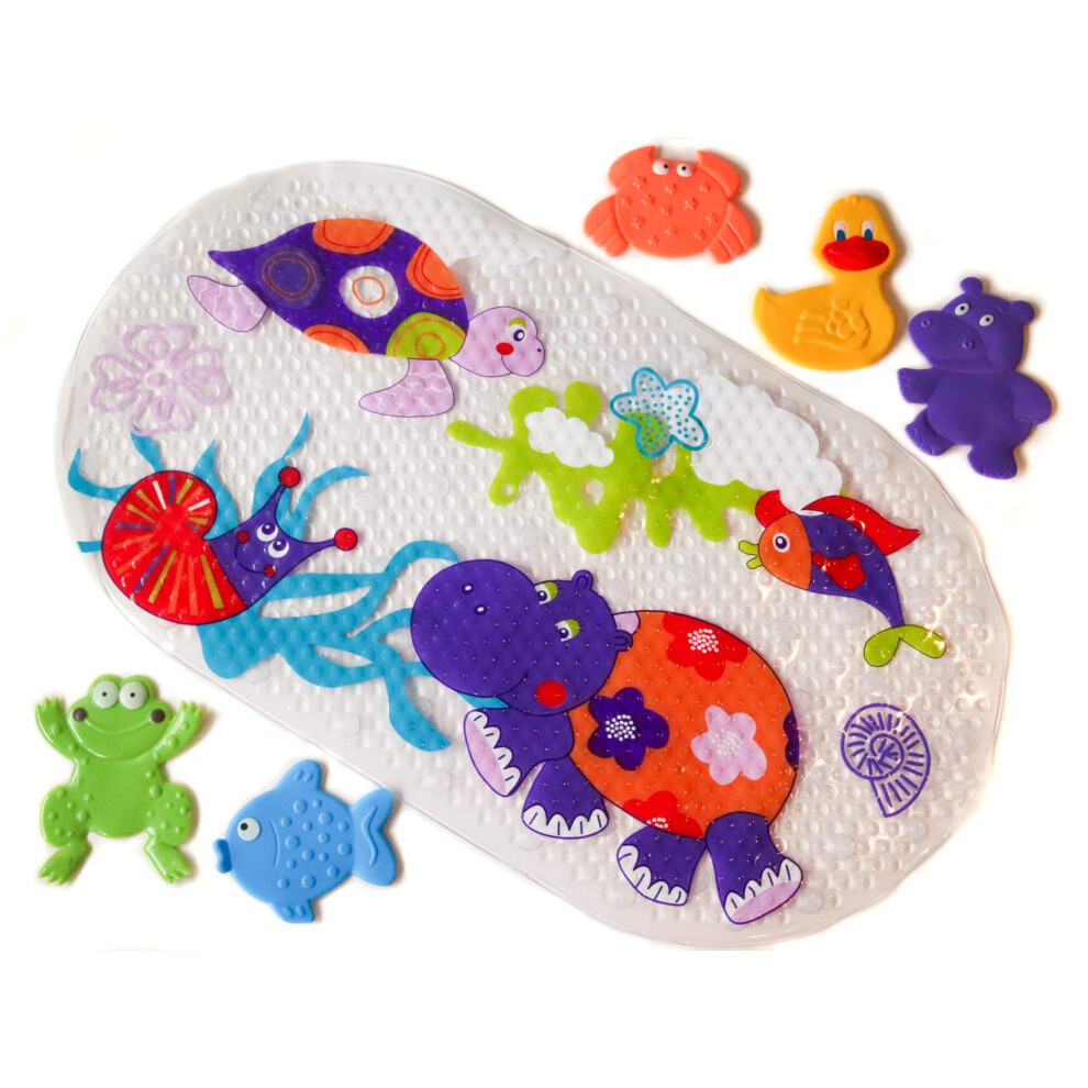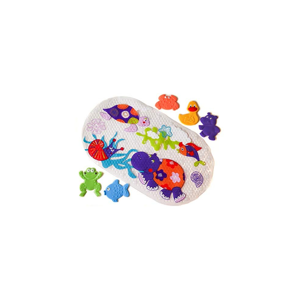 MATRIOSKA 1 Large Mat + 5 EXTRA Mini Non-Slip Bath / Shower Mats for Babies, Kids and Children with Strong Suction Cups, Prevent Slip and Fun Bath
