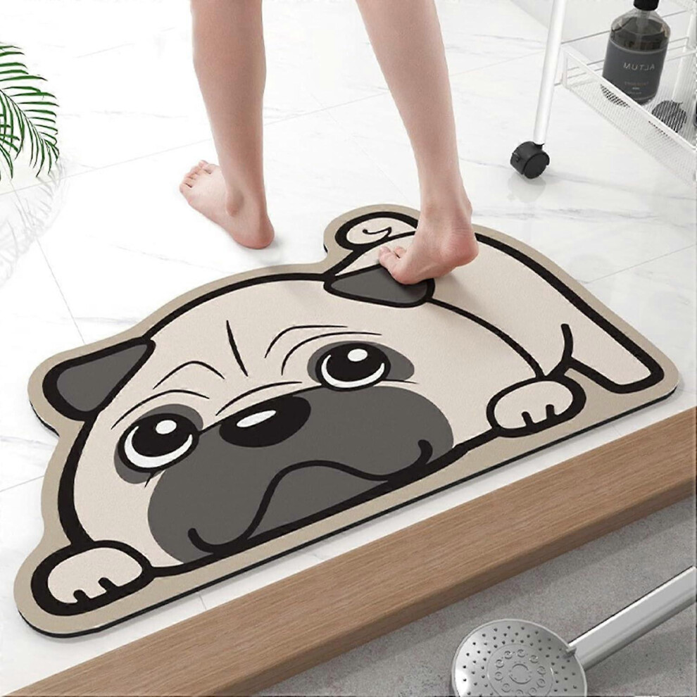 (As show, One size) Fun Bath Mat, Funny Cartoon Pug Dog Bath Mat, Soft Non Slip Water Absorbent Diatomite Rug Bath Mat Door Mats Rugs for Entrance Bed