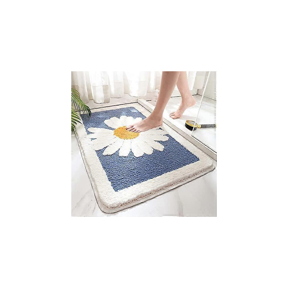 (As show, One size) Cute Daisy Flower Bath Mat, Fun Tufted Soft Bathroom Mats, Water Absorbent Non-Slip Bathroom Mat, Machine Washable(Blue)