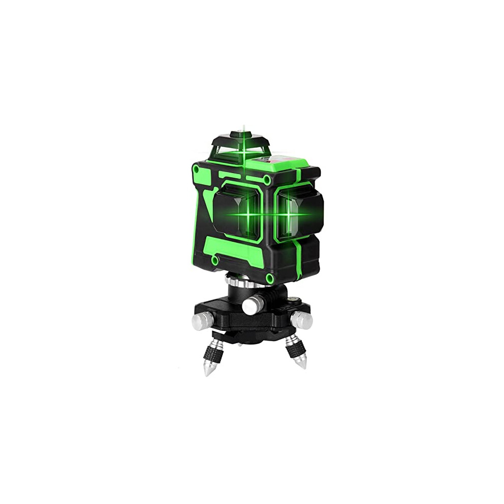 12 Lines Laser Level 360 Rotary 3D Green Beam Straight Line 3 Plane Cross Line Laser Self Balancing Rechargeable Rotary Base 3D Alignment IP54 Self