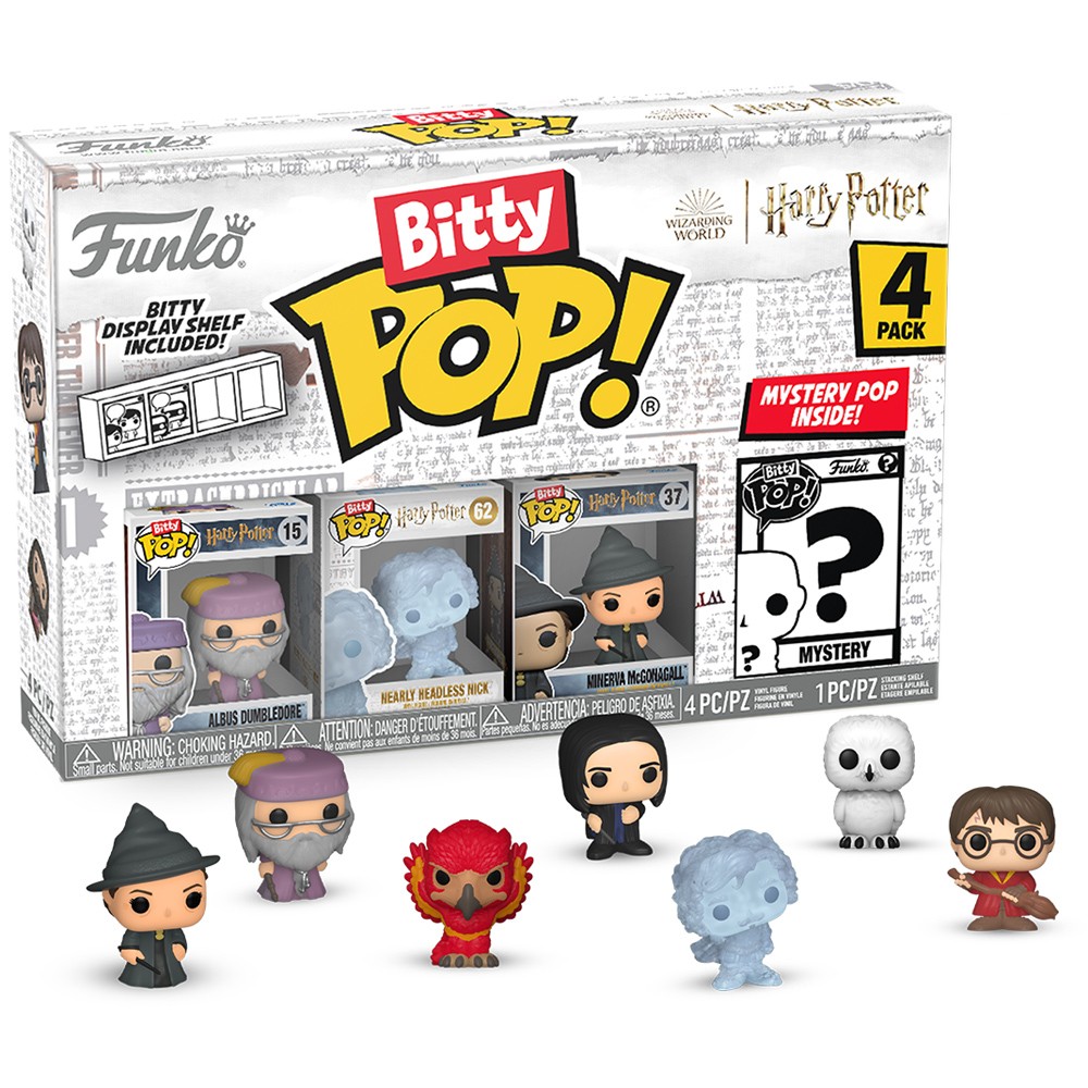 Funko Bitty POP! Harry Potter - Albus Dumbledore™, Nearly Headless Nick™, Minerva McGonagall™ and A Surprise Mystery Mini Figure - 0.9 Inch (2.2 Cm) Collectable - Stackable Display Shelf Included