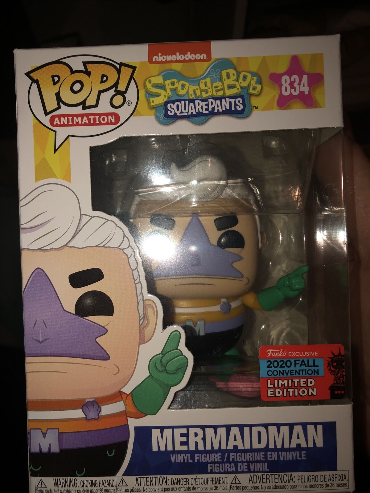 Funko Pop! NYCC 2020 Spongebob Squarepants Mermaidman #834 SHARED STICKER!