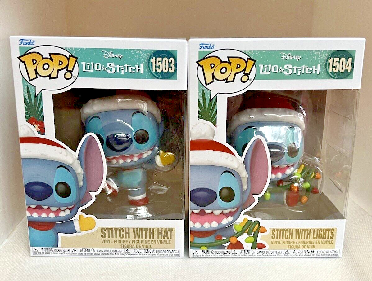 Funko Pop Vinyl Disney Stitch with Hat 1503 Stitch with Lights 1504 Christmas