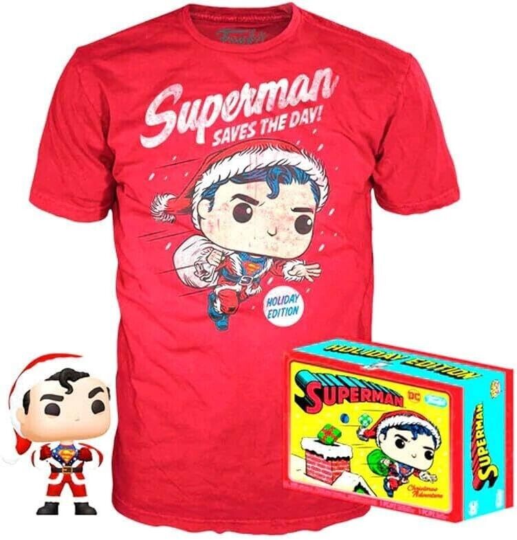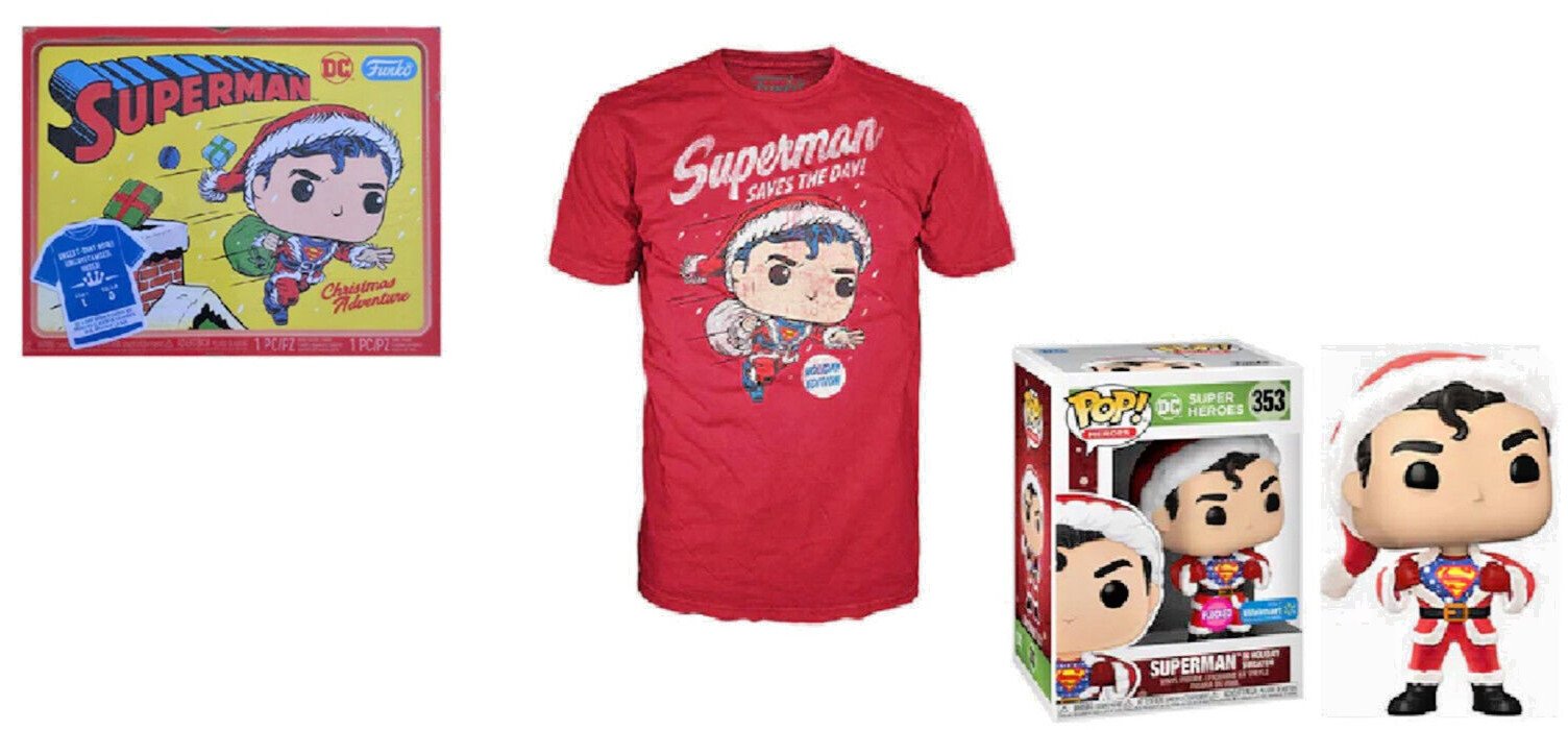 Funko Pop Dc Superman Pop Figure & T-Shirt (M) Set Christmas Adventure
