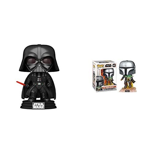 Funko POP Vinyl: Star Wars Obi-Wan - Darth Vader & POP Vinyls Star Wars : The Mandalorian Mando Flying With Jet Display Stand Holding Baby Yoda In His Arms Pack Collectible Toy POP! 50959