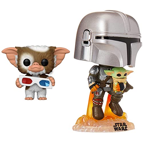 Funko 49888 POP Movies: Gremlins-Gizmo w/3D Glasses Horror Collectible Toy, Multicolour & POP Vinyls Star Wars : The Mandalorian Mando Flying With Jet Display Stand Holding Baby Yoda
