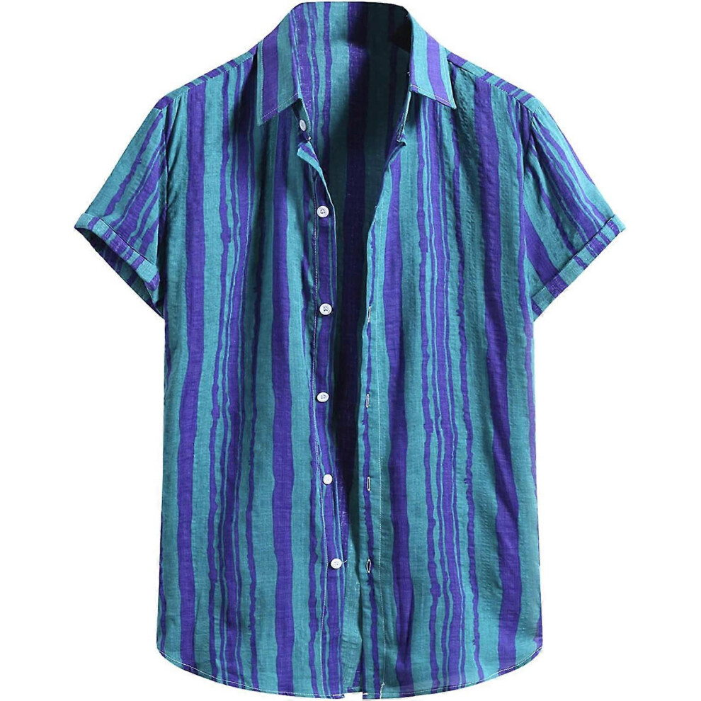 VISIONO Hawaiian Men'S Shirts,Creative Summer Seaside Men'S Hawaiian Shirts Chinese Style Bamboo Shirt Print Funky Shortsleeve Casual Beach Button Up Top For Festival,Party,Vacation,M