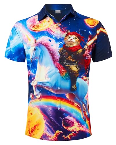 RAISEVERN Mens Shirt Funny Stag Cat Planet Graphic Festival Bad Taste Funky 3D Print Shirts Horse Ugly Awful Hawaiian Crazy Rave Party, XL