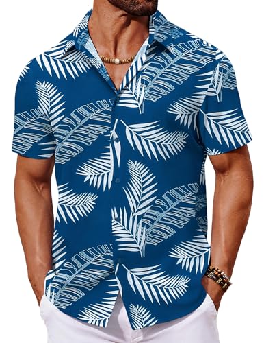 COOFANDY Hawaiian Shirts for Men Short Sleeve Summer Floral Shirts Funky Holiday Shirt Lightweight Hawaii Beach Shirt Regular Fit Palm Leaves Blue M