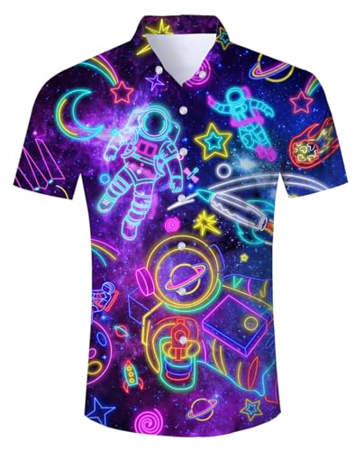 RAISEVERN Mens Shirt Funny Stag Dinosaur Shark Graphic Festival Bad Taste Funky 3D Print Shirts Galaxy Ugly Awful Hawaiian Crazy Rave Party, XL