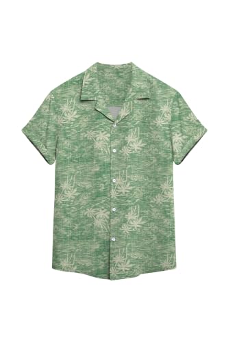 Sailwind Hawaiian Shirts for Men Short Sleeve Regular Fit Beach Funky Flower Summer Shirts Button Down Floral Print Shirt Holiday Party (Light Green Cocos, XL)