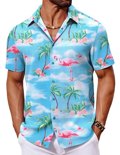 COOFANDY Mens Hawaiian Shirt Short Sleeve Summer Shirts Holiday Funky Hawaii Shirts for Men Flamingo Shirt for Party Flamingo Blue S