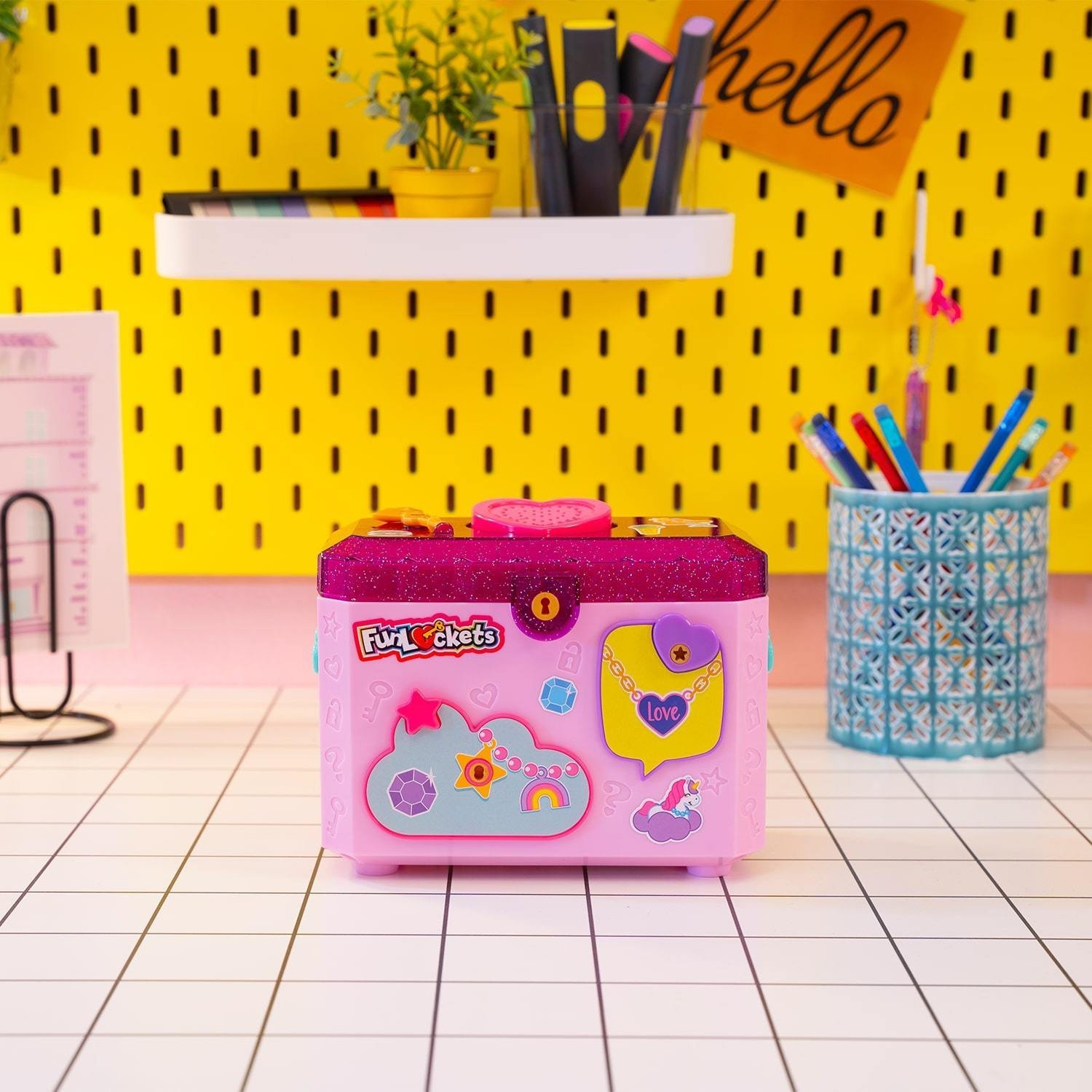 FUNLOCKETS - Electronic Jewellery Box with Voice Recorder Secret Compartment 25 Surprises, Accessories for Creating, Pink, 5 Years