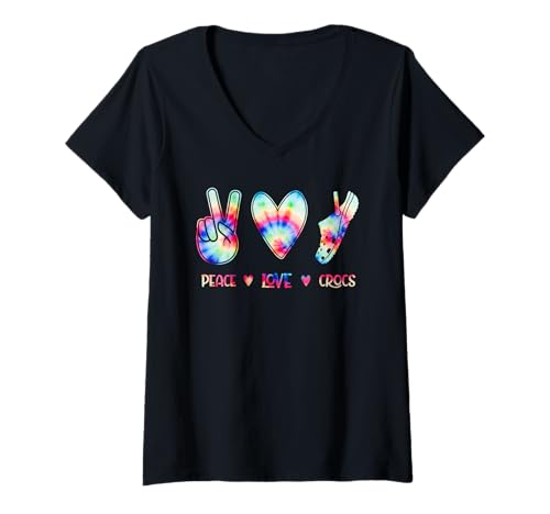 Womens Peace Love Crocs Funny Gift for Family Xmas Pyjama V-Neck T-Shirt