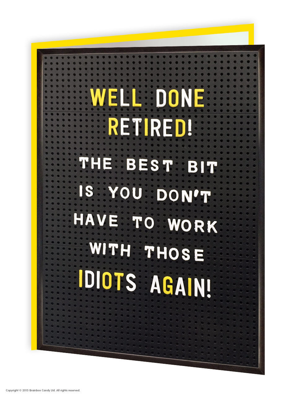 Retirement Greeting Cards Brainbox Candy Funny Comedy Humour Cheeky Novelty Joke