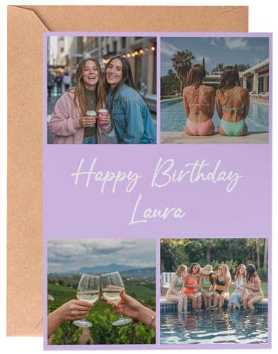 Hippowarehouse Personalised Birthday Card Collage 4 Photos and Text for him her Valentines Best Friend Personalised A5 with envelope Funny Cards for Men and Women Blank inside Anniversary