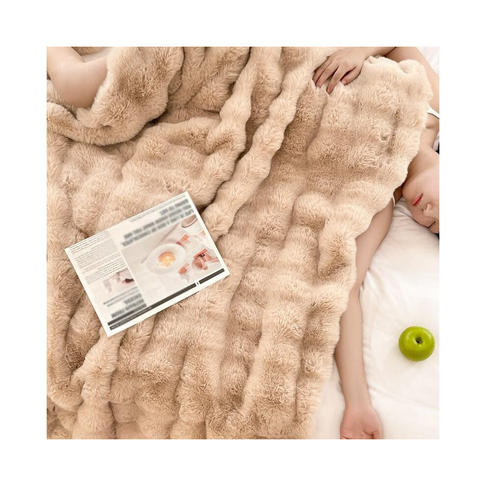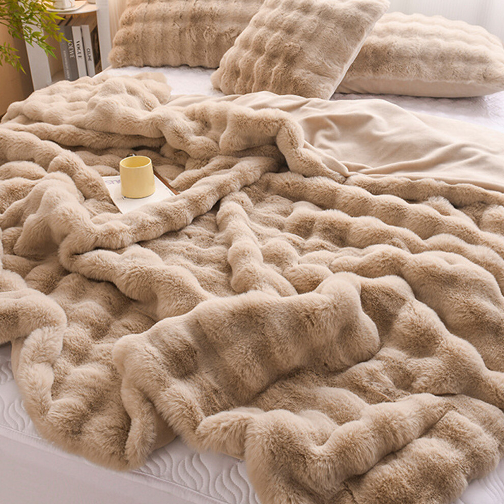 Faux Fur Blanket, Bubble Blanket, Faux Rabbit Fur Blanket (Curry, 200x230cm)