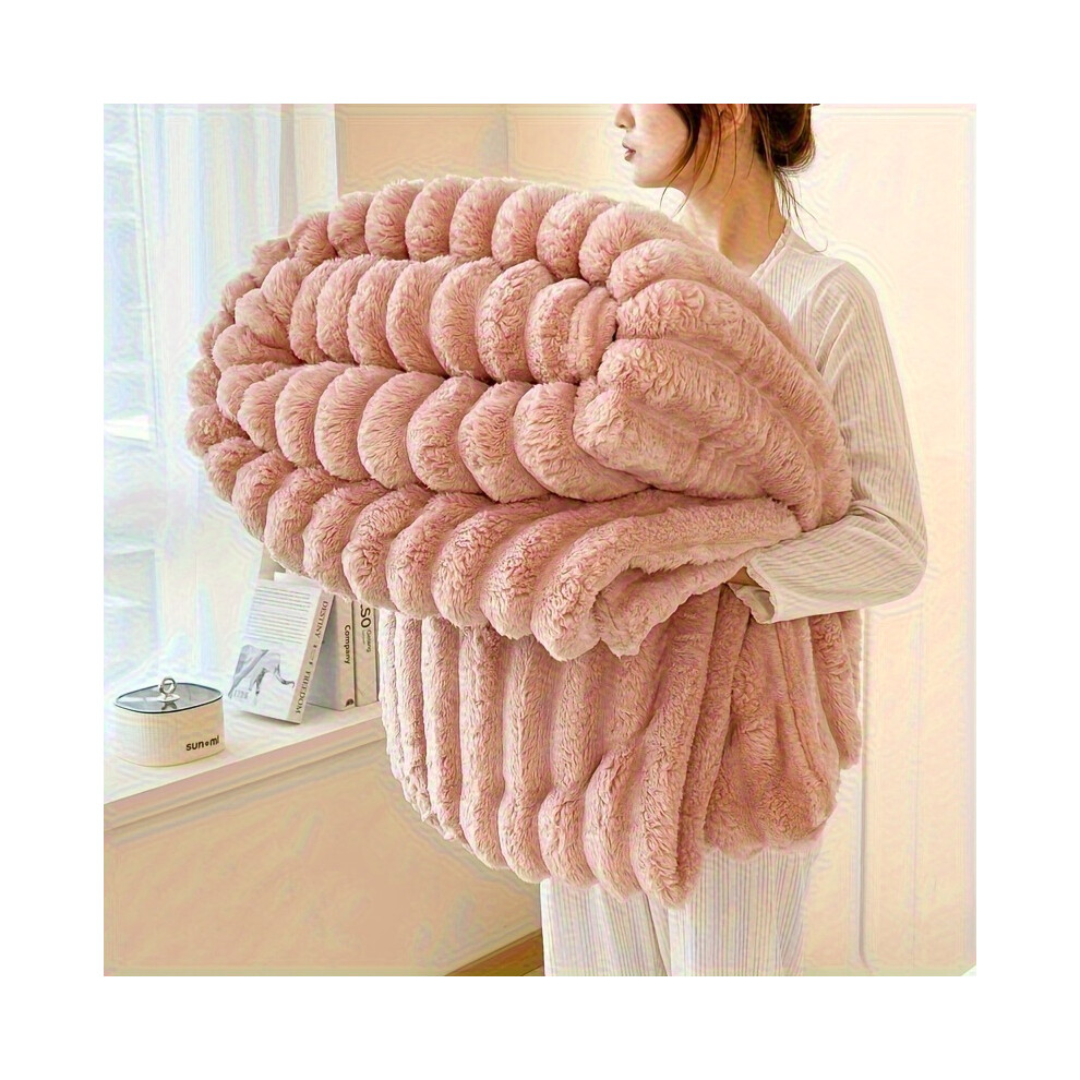 (Pink Color, 150.01 x 200.0 cm) Luxury Plush Rabbit Fur Blanket, Realistic Faux Rabbit Beige-like Texture, Soft Warmth for Bed Couch Camping & Travel,