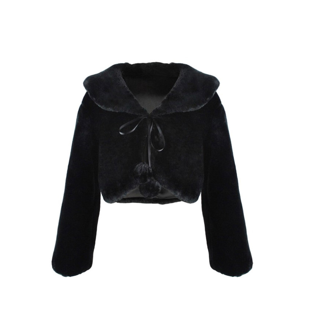 (Black) Girls Faux Fur Bolero Wrap Shawl Soft Fluffy Dress Cape Pretty Flower Girls Wedding Shrug Winter Warm Plush Jacket Coat
