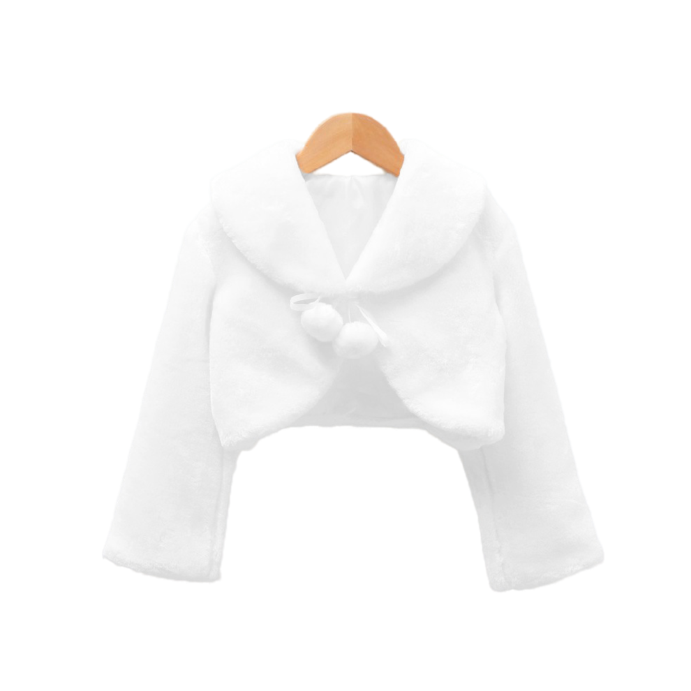 (White) Girls Faux Fur Bolero Wrap Shawl Soft Fluffy Dress Cape Pretty Flower Girls Wedding Shrug Winter Warm Plush Jacket Coat