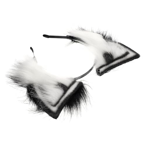 BESPORTBLE Plush Ear Styled Headwear Headband with Soft Long Fur Non-slip Comfortable Hair Hoop for Women Lovely Black and White Cosplay Party Accessory