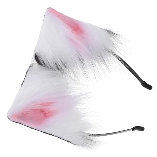 ELAYARD Plush Fox Ear Headband Soft Animal Ear Hairband Comfortable Cosplay Accessory for Party and Festival Wear Fits Head Cute Pink and White Faux Fur Design