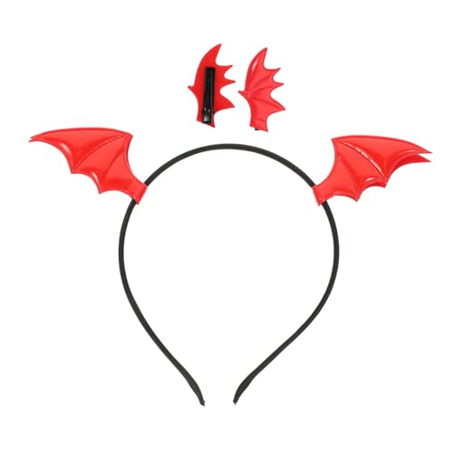 HEALEEP Bat Headband Hair Clip Set Wing White Barrettes for Half-face Spiky Headbands Adult Halloween Costume Decorations Horror Halloween Bat Hair Clips Fur Hey Fabric Red