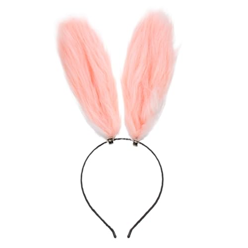 Veemoon Plush Bunny Ear Headband for Women Soft Rabbit Ear Hair Hoop with Pink and White Fur Comfortable Costume Decoration for Cosplay and Dress Up