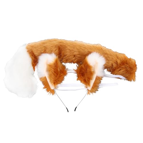 Hemobllo Fox Animal Ears Headband Costume Prop, White and Brown Faux Fur Hairband for Festival Party and Cosplay, ’ Festival Headwear Accessory