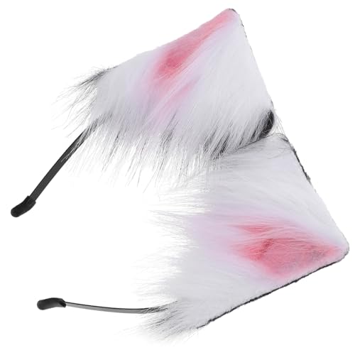 COLLBATH Plush Animal Ear Headband for Cute Cosplay Hair Accessory Soft White Faux Fur Ear Hoop for Birthday Party Christmas Mask Masquerade