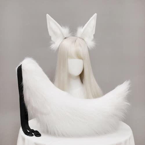 Xoeryoy Faux Fur Fox Ears and Tail Set, Furry Wolf Ears and Tail, Cute Animal and Headband for Cosplay Party, Masquerade, White