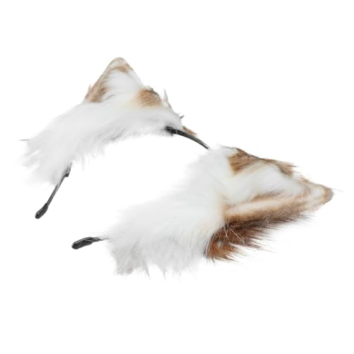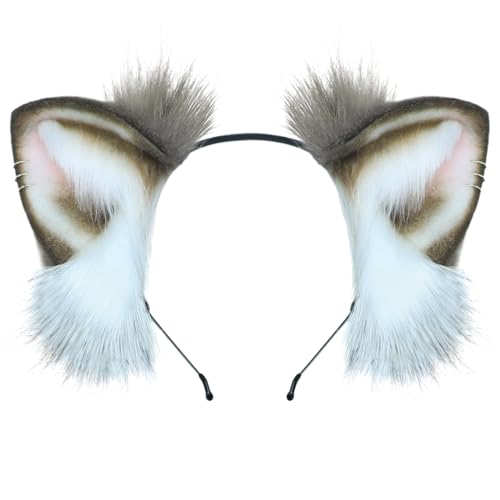Minicloss Faux Fur Fox Wolf Ears Headband Handmade Furry Animal Ear Hairband Animal Cosplay Hair Hoop Women Men Head Accessories for Halloween Cosplay Costume Party(Brown White)