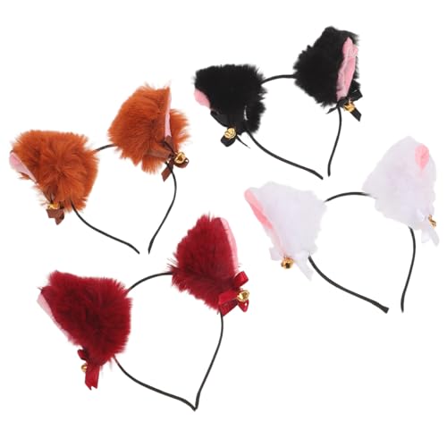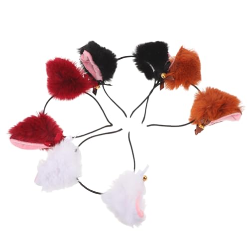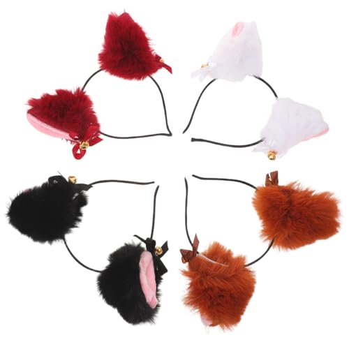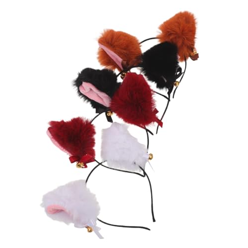 PACKOVE 4pcs Plush Fox Ears Headband with Bell Bow Knot for Animal Cosplay Soft Faux Fur Hairband in Black White Wine Cute Festival Costume Accessory for Halloween Christmas Birthday