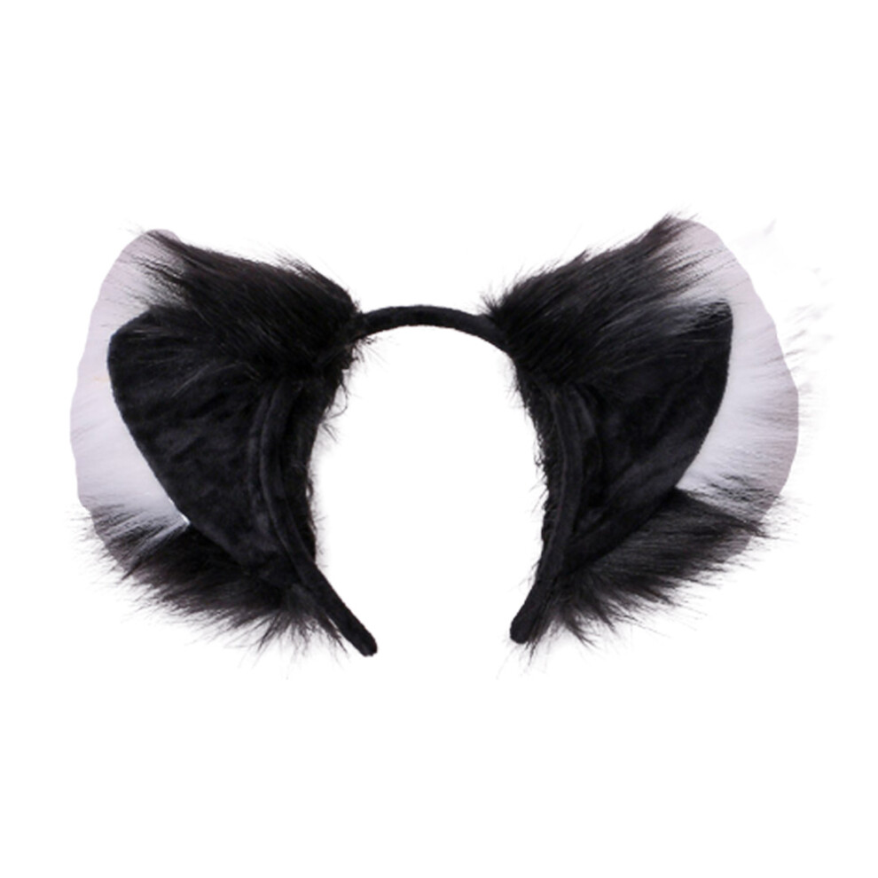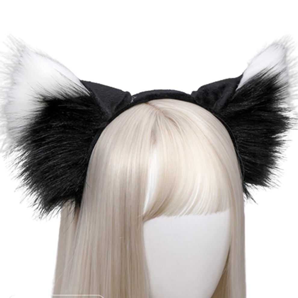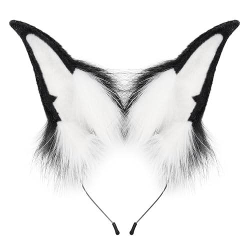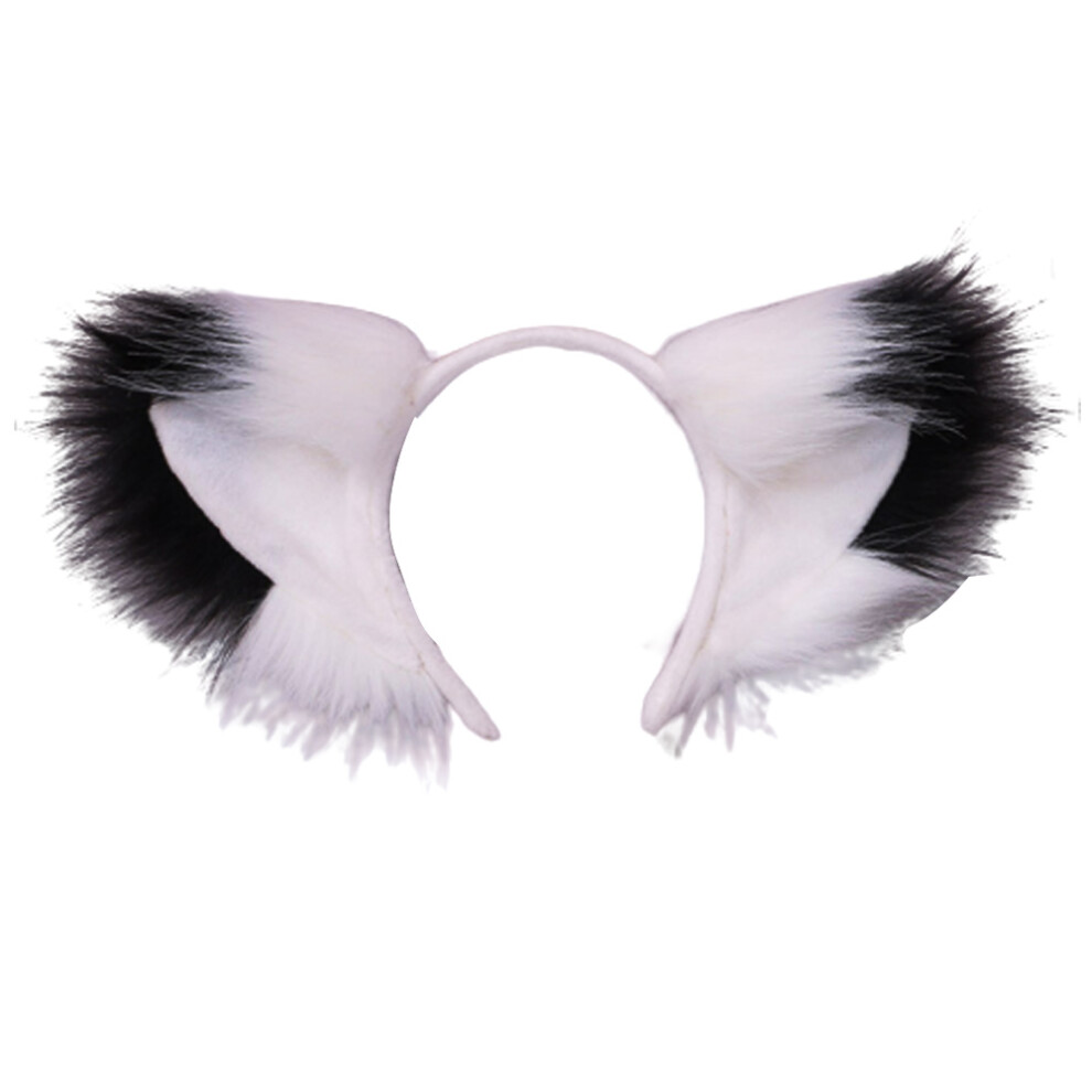 HoveeLuty Fox Ear, 8.7x7.5 Inch Soft Furry Ears, Portable Faux Fur Therian Ears, Adjustable Wolf Cat Headband for Party Cosplay Costume Accessories, Black White Wolf Cat