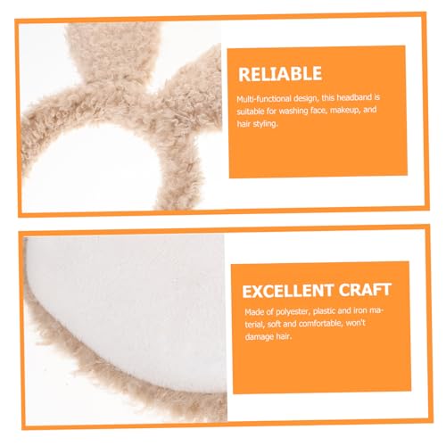 FIXOSHEE Cute Plush Rabbit Ear Headband for Halloween Multi-functional Hairband for Face Washing Makeup and Hair Styling Cosplay Accessory with Khaki and White Curly Fur Design