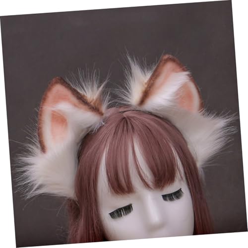 DEARMAMY Plush Animal Ear Headband Cosplay Hair Hoop Lightweight Festival Party Accessory for Masquerade and Role Playing with Bendable Long Fur Ears in Camel and White