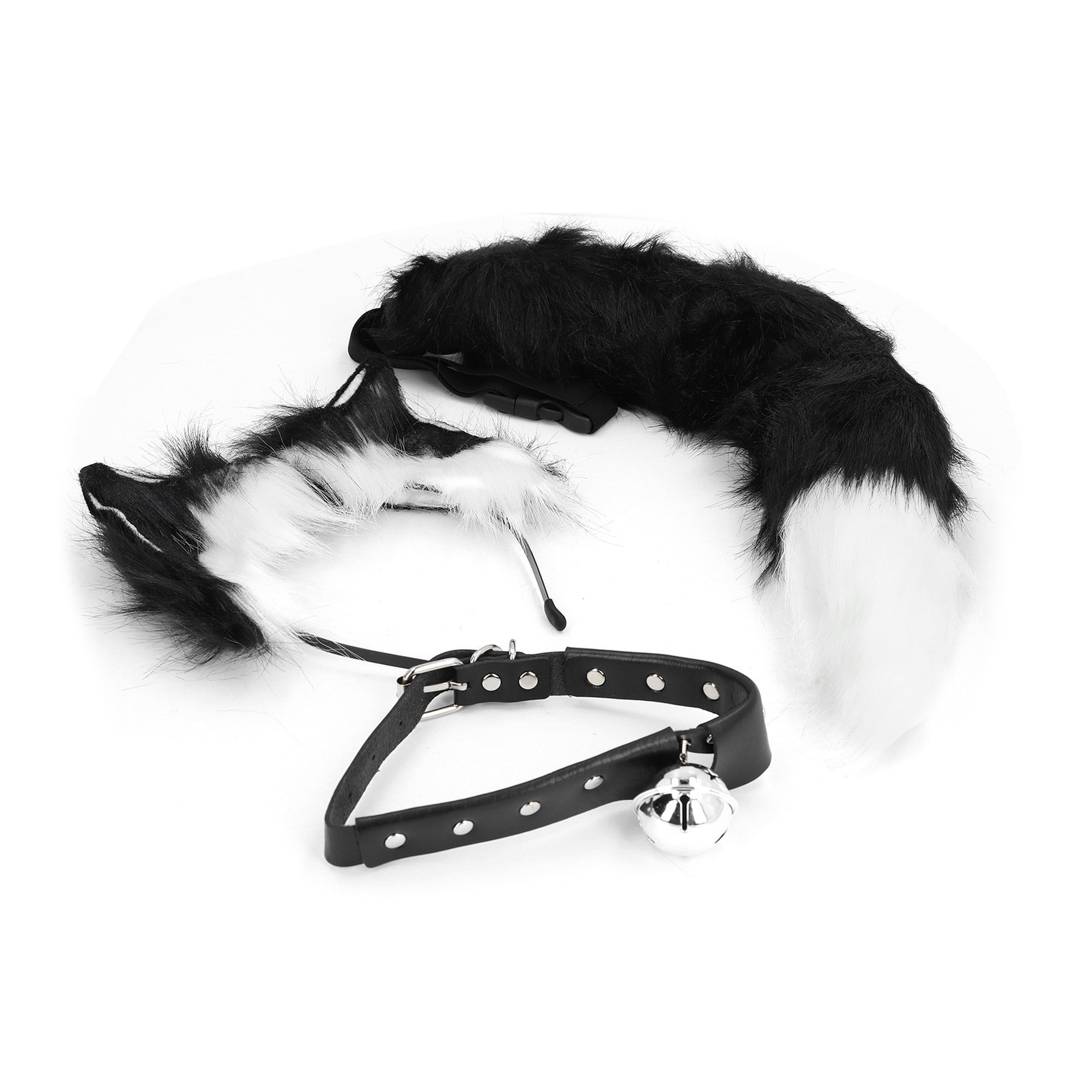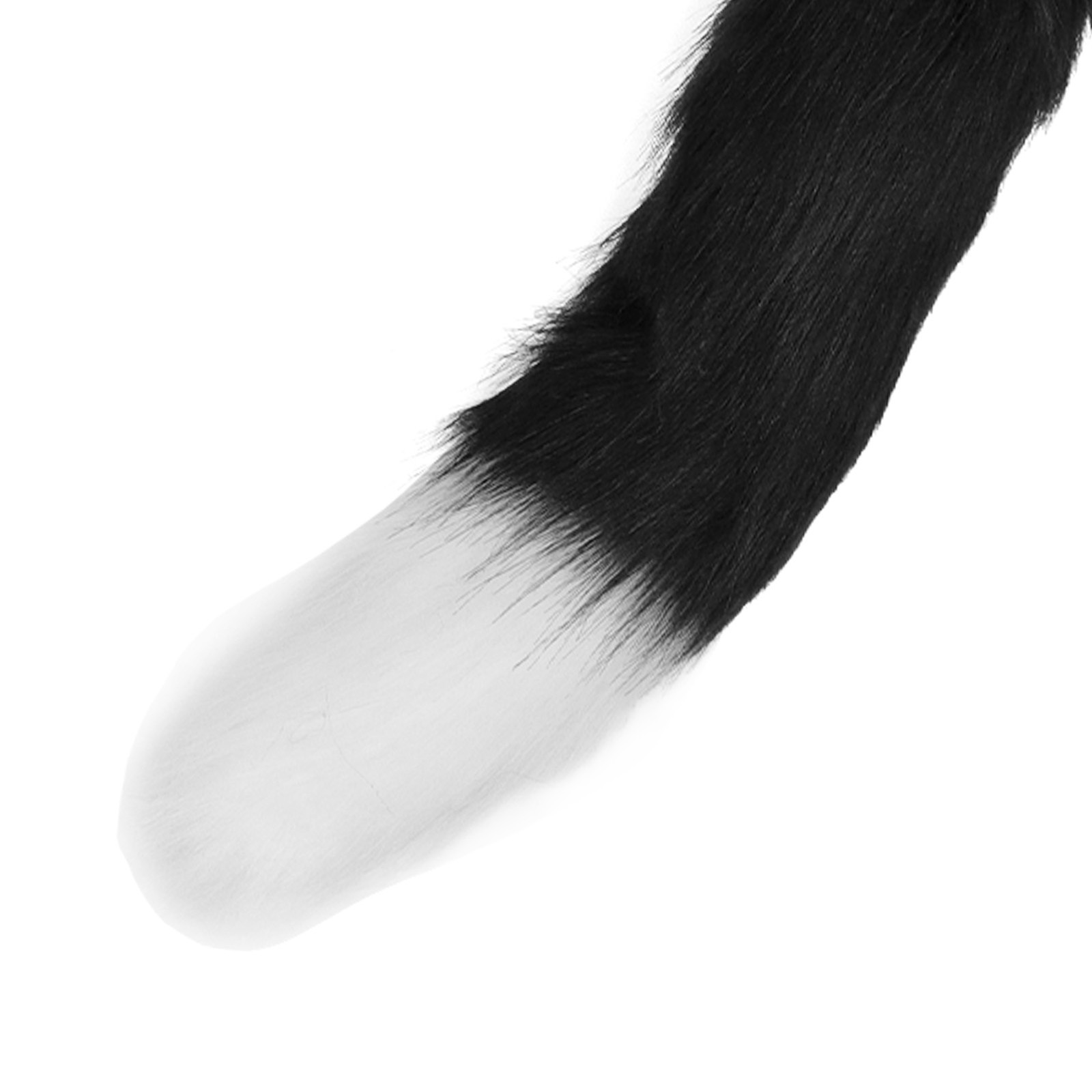 Ceciley Wolf Fox Furry Tail Plug and Ears Headband Animal Costume Fancy Dress Halloween Adjustable Faux Fur Tail and Ears (Black White)
