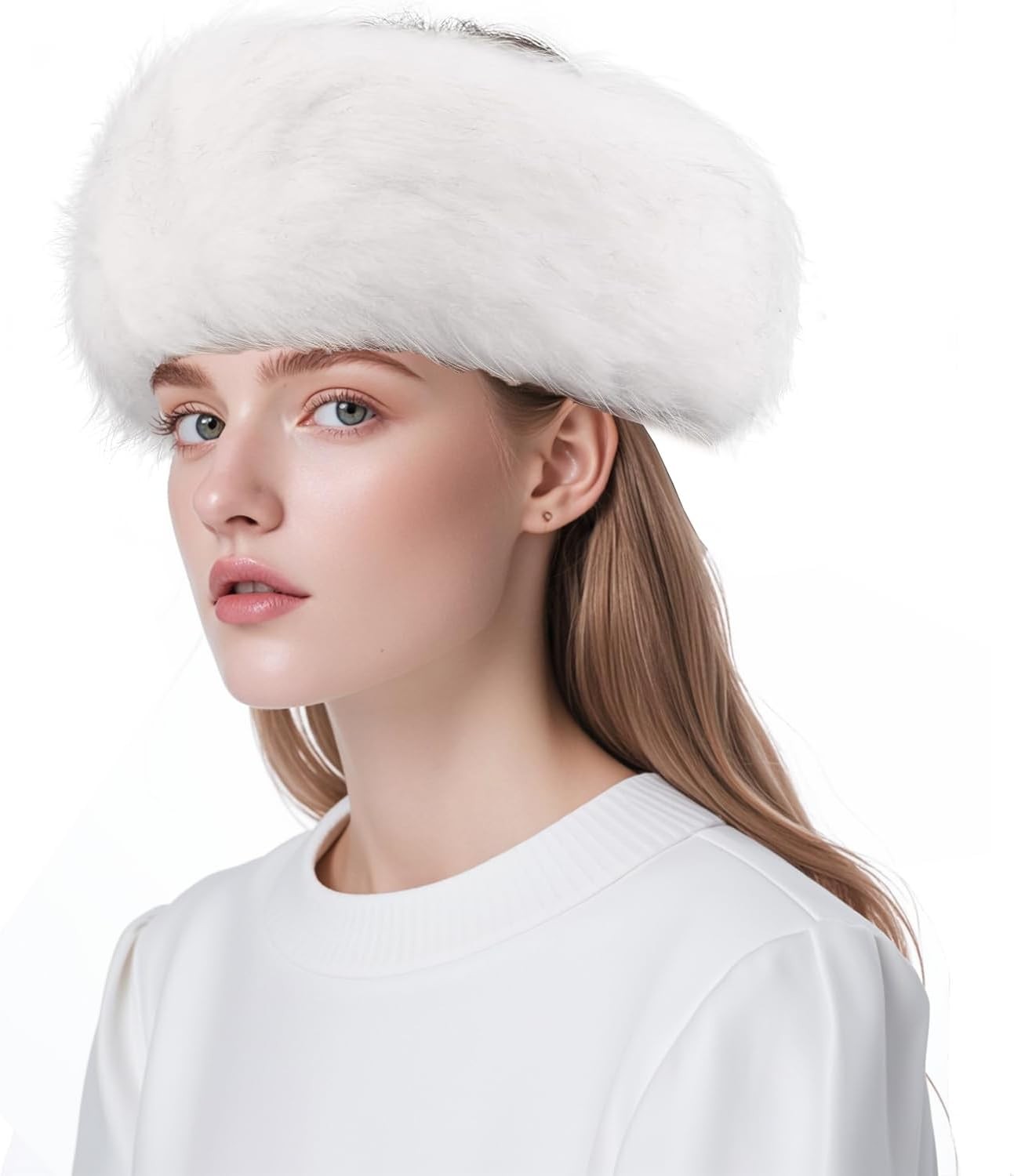 EUPSIIU Women Faux Fur Headband, White Ear Muffs, Muffs Headband for Men & Women Kids, Fluffy Winter Ear Warmer Hairband, Fluffy Ski Hat, Fuzzy Fur Hat, for Cold Weather (White)