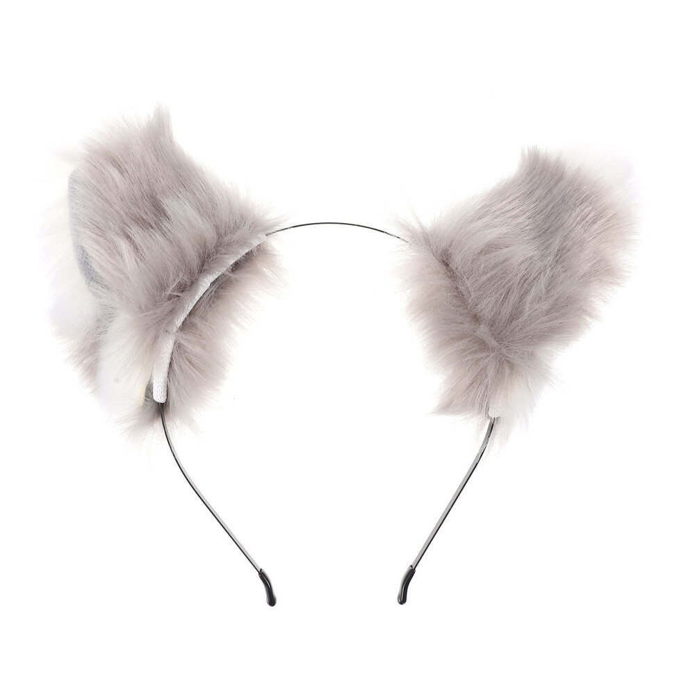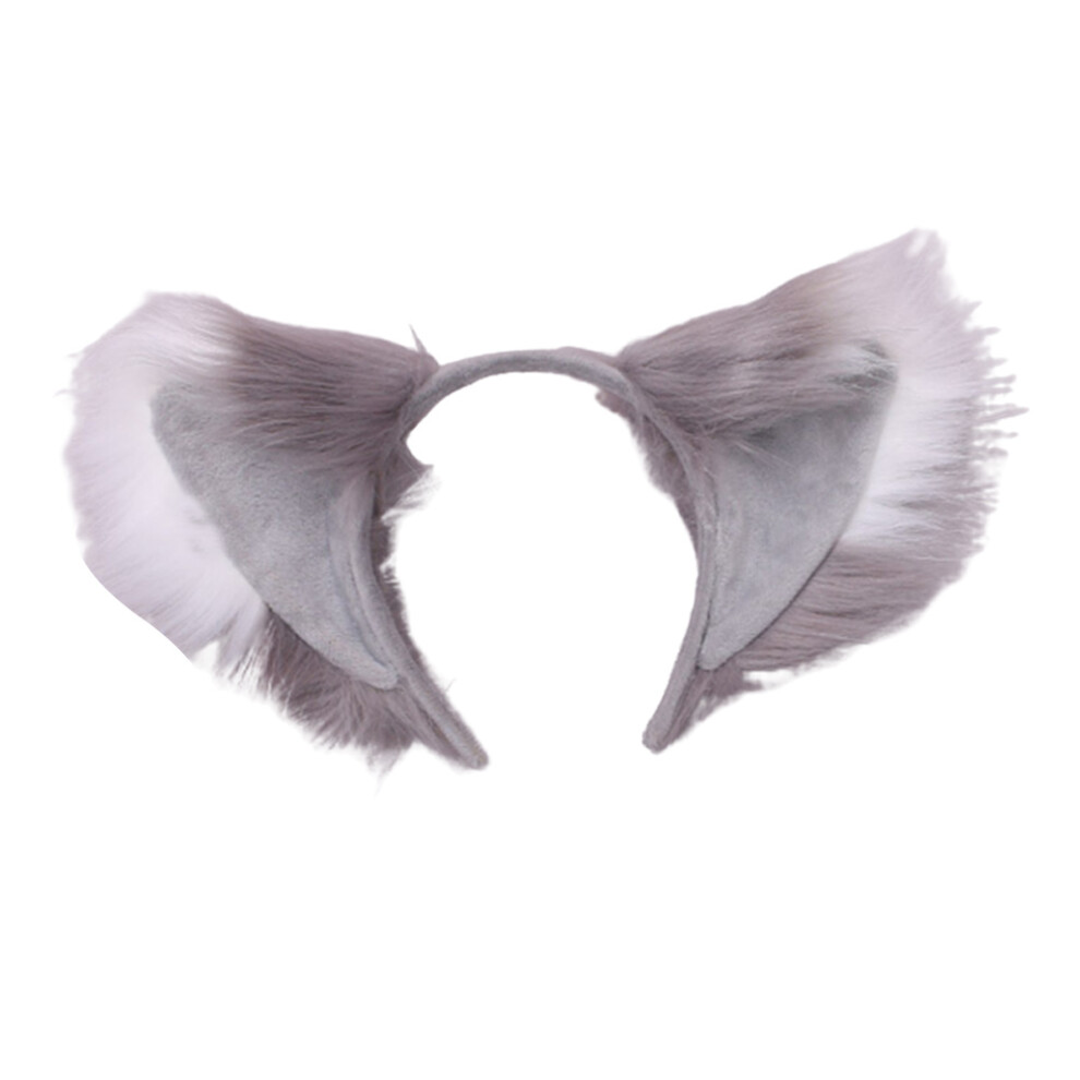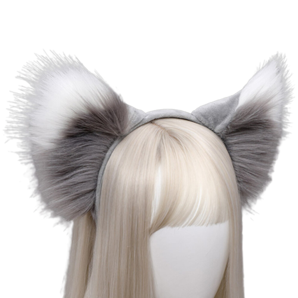 (grey White) Handmade Wolf Fox Fur Ears Hairhoop Headwear Dress Party Halloween Christmas Costume Headband Hairband