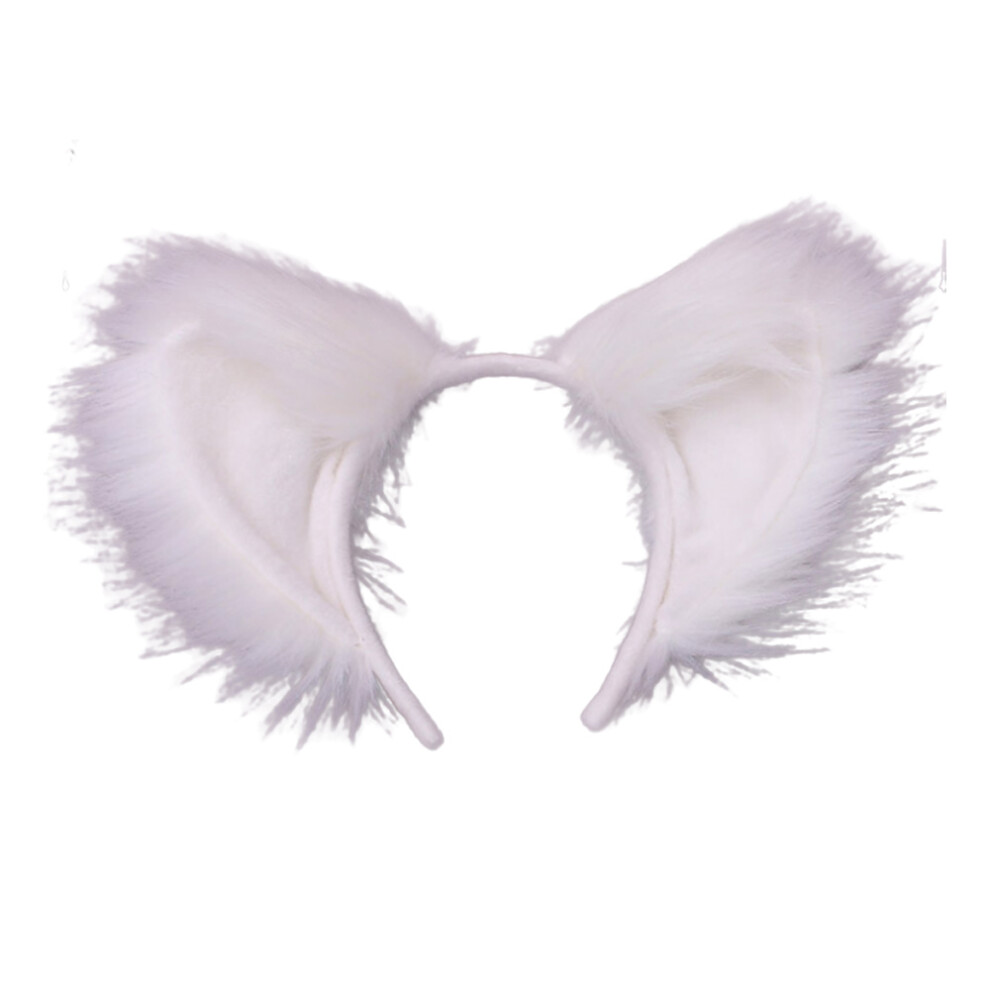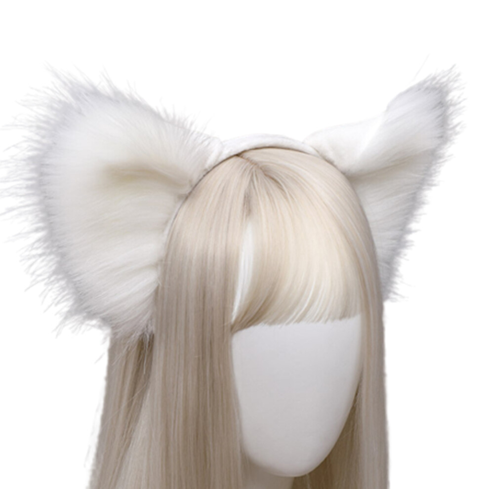 1Pc White Faux Fur Ears Headband Cosplay Comfortable Hair Accessory