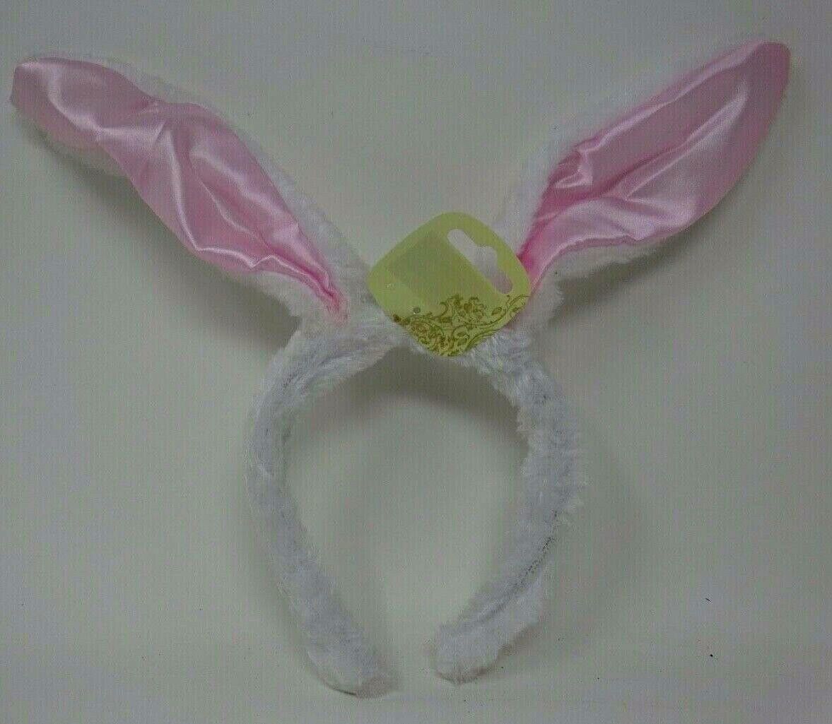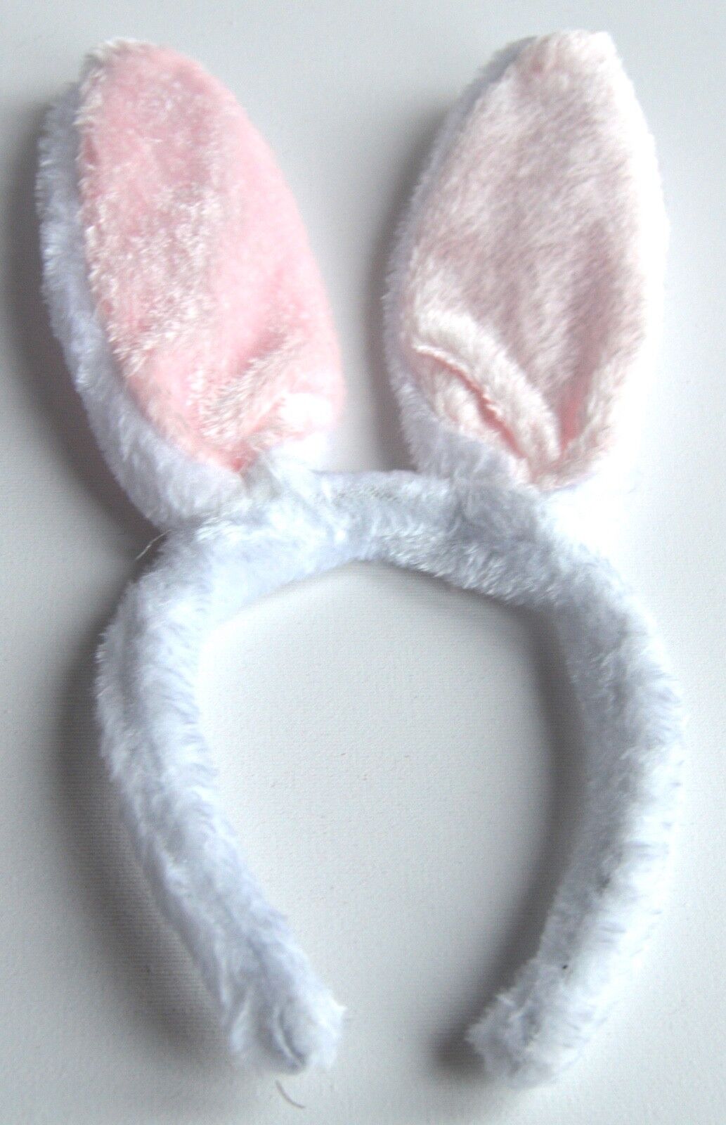 NEW Pink White Fur Fabric Bunny Ears Headband Easter Hen Do Fancy Dress Children