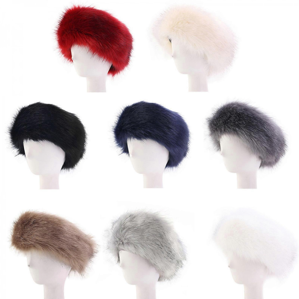 Red wineFluffy Winter Hat Faux Fur Headband Elastic Winter Ear Warmer Fashion Ski Hat Wide for Head Wrap Cold Outdoor Accessorie white