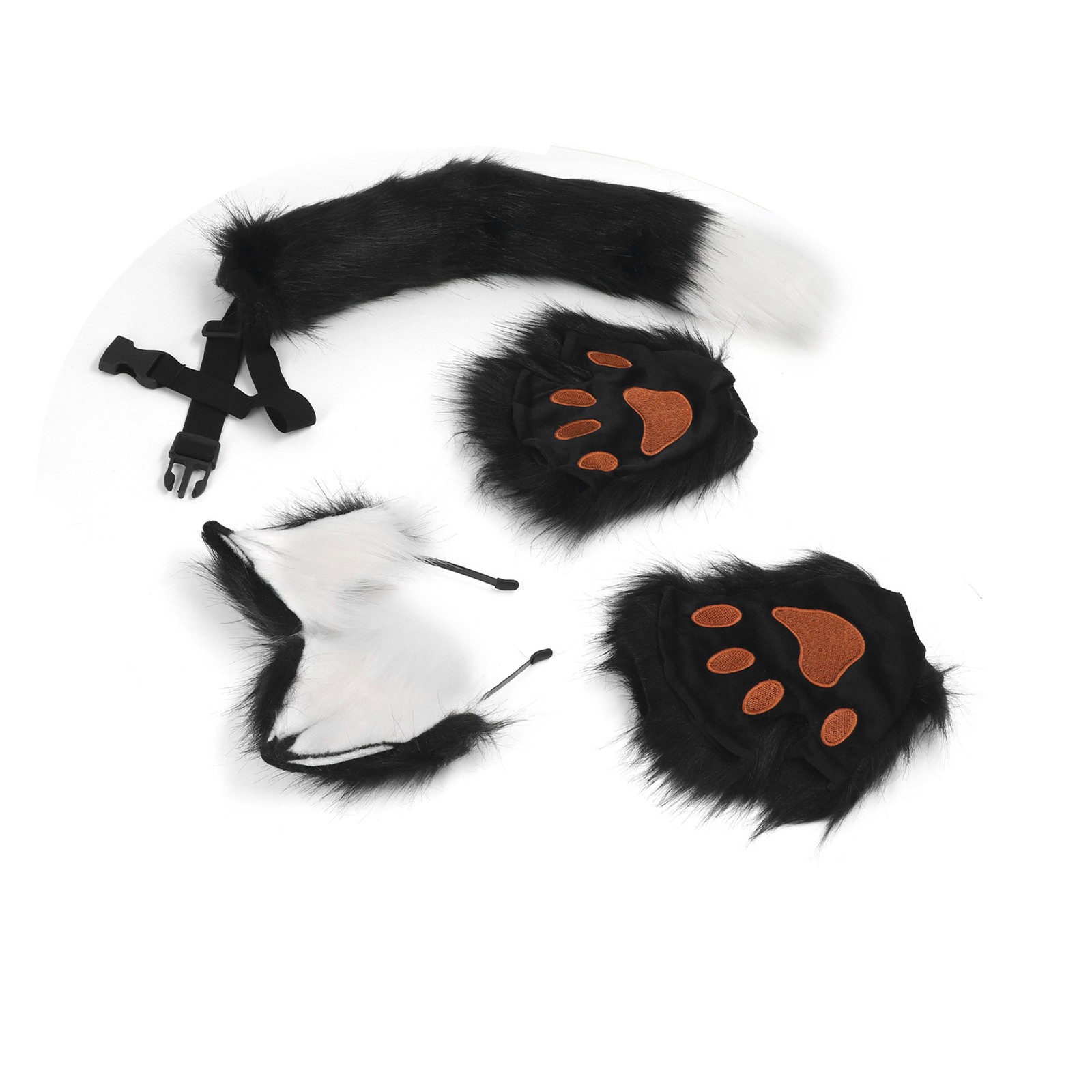 mophrati Faux Fur Cat Ears and Tail Set Costume Fancy Dress Gift for Stage Shows Soft and Fluffy Accessories Headband Halloween , Black White
