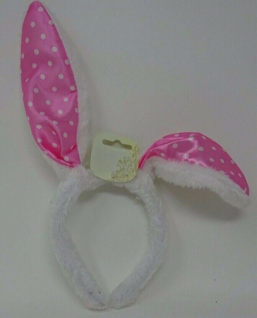 Pink & White Spots Fur Furry Rabbit Bunny Ears on a Fur Headband 28cm Easter
