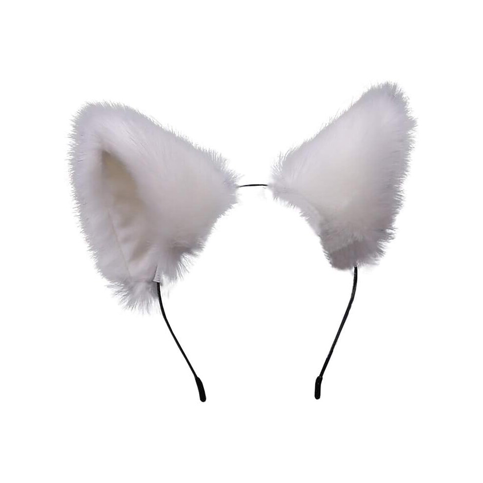 Faux Fur Fox Cat Ears Headband Hair Hoop Hairband Animal Ears Cosplay Party Costume Ears Headwear (White)