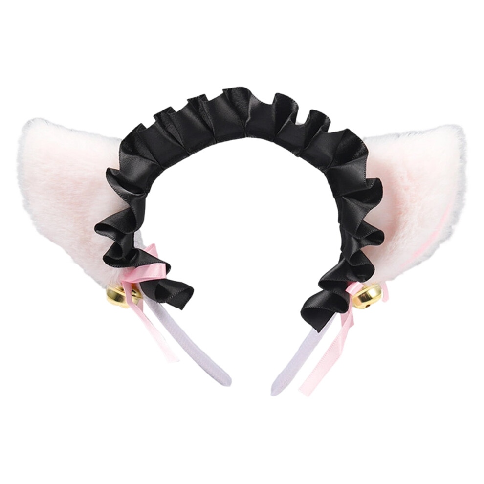 Jowxsx Cute Cat Ears Headband Long Fur Fox Ears Cosplay Headband with Bells Headwear Hairband for Party Costume Halloween Hairhoop White