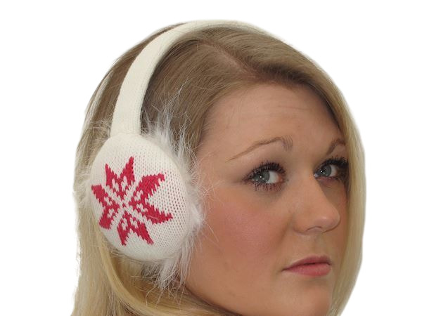 Winter Knitted Ear Muffs for Women, Faux Fur White Snowflake Headband